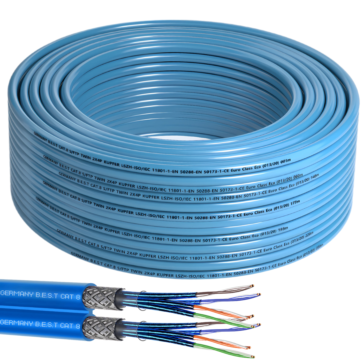 Germany B.e.s.t Cat.8 (Class I) 2000MHz LAN-Verlege-Netzwerkkabel: Zuverlässige Hochleistung für Ihr Netzwerk