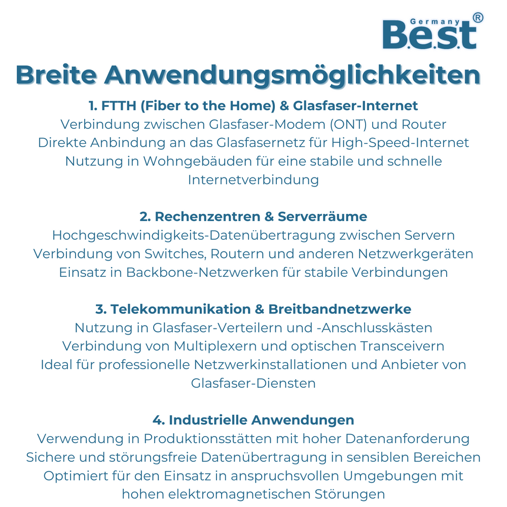 ✔ Universelle Kompatibilität – Geeignet für Glasfaser Internet, FTTH, Netzwerk-Infrastrukturen, industrielle Anwendungen und schnelle Datenübertragung ohne Signalverluste.